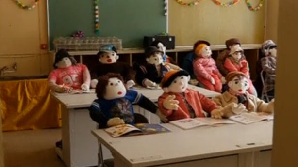 Replicas of those last two students, the teachers and even the principal were added to other scarecrows that now sit silently in empty classrooms,