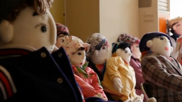 The scarecrows - or dolls - are built on a wooden base, with newspapers and cloth used to fill them out. They are often dressed in hand-me-downs, and the ones propped up outdoors are lined with plastic to keep them dry.