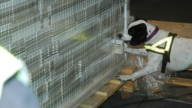 The detection dog "Casey" uncovered the cigarettes hidden within the glazing spaces of window frames.