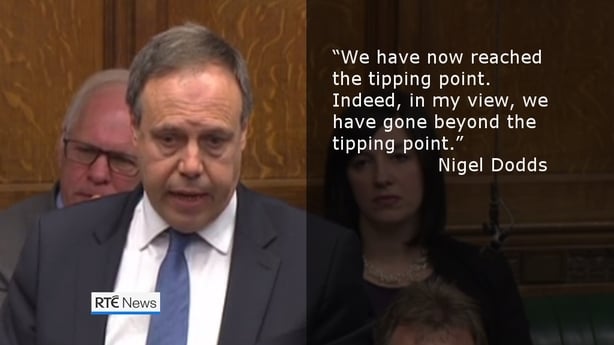 He was responding to a question in parliament from DUP parliamentary group leader Nigel Dodds, who warned: "We have now reached the tipping point, indeed in my view we have gone beyond the tipping point."
