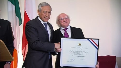 The Chilean government has honoured President Michael D Higgins with an award for his role which helped save thousands of people during the Pinochet regime.
