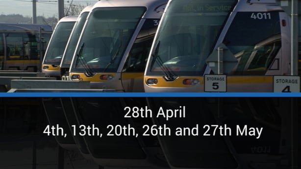 However, this evening SIPTU served notice of industrial action on Luas operator Transdev, notifying the company that there will be strikes on 28 April, 4 May, 13 May, 20 May, 26 May and 27 May.