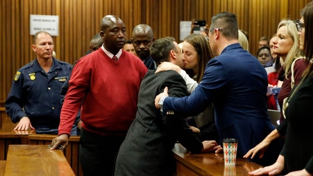 Pistorius, 29, hugged his family before being taken out of the court in Pretoria to begin serving his term.