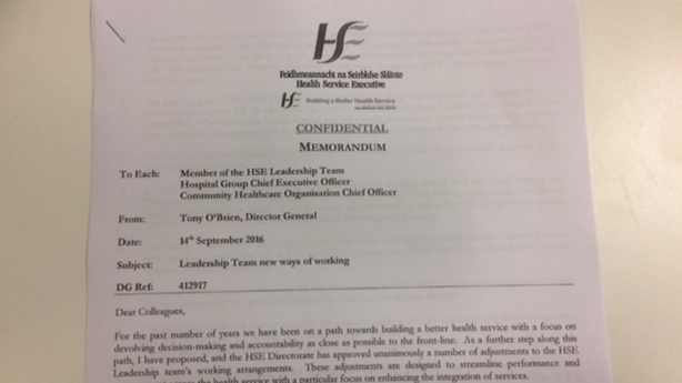 The HSE is making a number of changes to its leadership team, according to a confidential memo issued by the Director General, Tony O' Brien to senior staff.