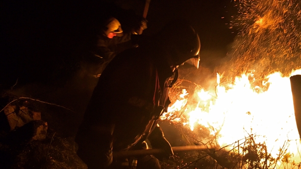 The fire has been burning in the Derrynasaggart mountains for almost two days now, affecting thousands of acres.