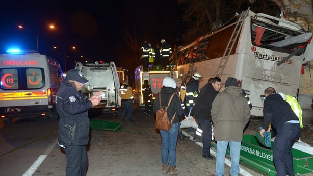The bus, which was making an overnight journey from the capital Ankara to the western city of Bursa, crashed in the region of Eskişehir amid good road conditions according to an official.