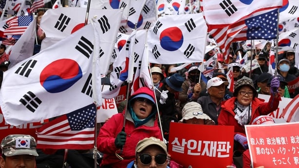 Up to 1,000 Park supporters gathered outside the court, holding national flags and signs calling for an end to "political revenge" against her.