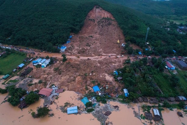 Hundreds of emergency response workers were still pulling victims out of the muddy wreckage in Paung township today.