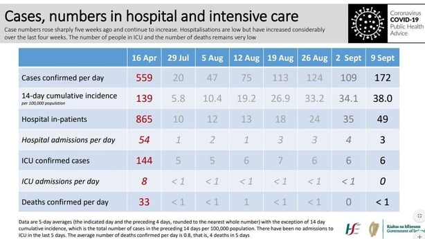 He said our five day average number of cases has risen from 100 to 120 to, in recent days, 172. We have seen a "progressive and clear increase" in the number of people admitted to hospital.