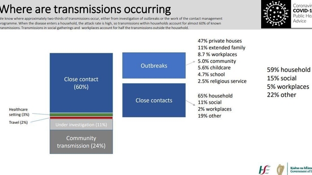 Chair of NPHET's Epidemiological Modelling Group Professor Philip Nolan said that they do know where the majority of transmissions are occurring.