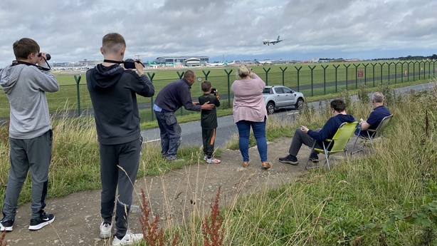 Plane spotters have returned to the ''mound" at the perimeter fence of Dublin Airport to watch the planes land.
