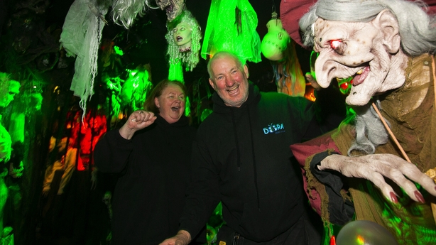 Starting with just two mannequins 23 years ago, Ken has since invested thousands of euro in props, lighting and treats - a Halloween scare-fest he says his wife Gail has grown to accept.