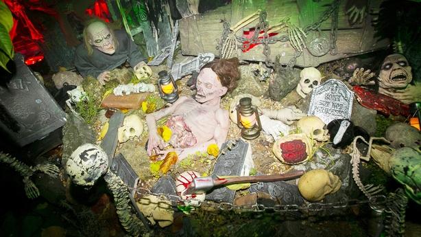 Starting with just two mannequins 23 years ago, Ken has since invested thousands of euro in props, lighting and treats - a Halloween scare-fest he says his wife Gail has grown to accept.