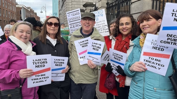 "We're here to protest for a national contract and decent pension provisions, incremental salary scale, which is what every other teacher has in the country. We are committed professional people and we are permanent part-time. We are laid off five times a year. We're laid off at the moment. We're not on midterm break with like other teachers. We are laid off we are on the dole. And it six more weeks, we'd be laid off for two weeks for Easter. And 10 weeks after that we'd be laid off in the summer."