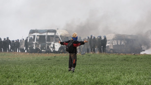 Around the construction site, defended by the police, violent clashes quickly broke out between the security forces and radical militants, AFP correspondents said.