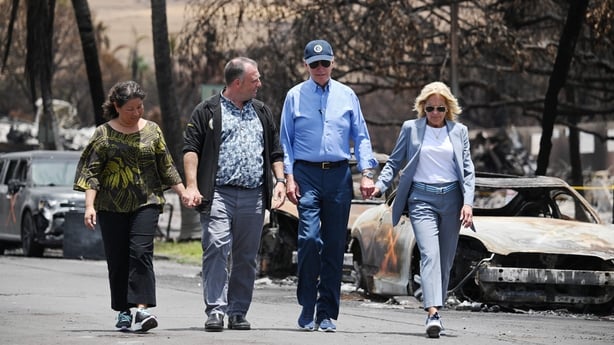 Mr Biden and First Lady Jill Biden walked through the ravaged remains of Lahaina with Hawaii's Governor Josh Green and his wife, nearly two weeks after ferocious, wind-whipped blazes sent residents jumping into the ocean to escape the flames.