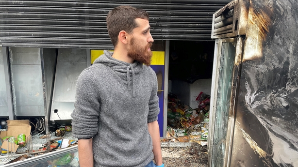 Bashir, who did not wish to provide his surname, and his staff were removing remaining stock from his grocery store, which was set alight last night.