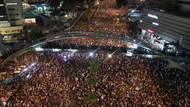 The demonstrators are demanding Mr Netanyahu reach a ceasefire agreement with Palestinian militant group Hamas to bring the remaining hostages home.