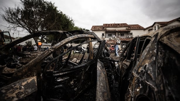 Images from Petah Tikva, near Tel Aviv, showed several damaged and burned-out cars, and a house pockmarked by shrapnel.