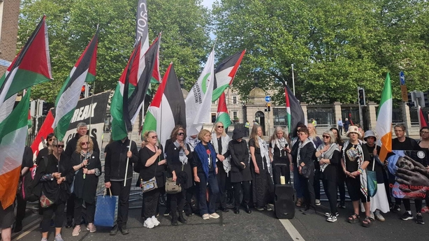 During the protest a group of women dressed in black held a 15-minute "keening" outside the gates of Leinster House - the action of wailing in grief.