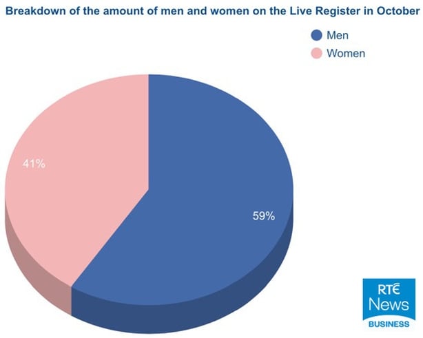 For the year to the end of October the number of men in receipt of social welfare fell by 28,105 (12.9%) to 189,667, while there was a drop of 9,731 (6.9%) to 131,127 for women.
