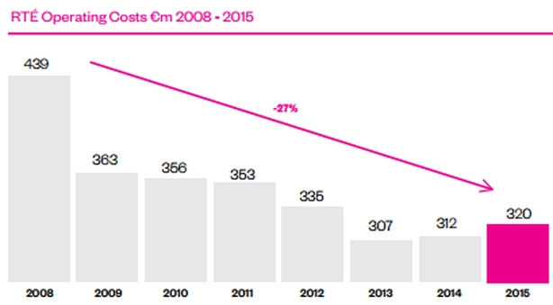"Costs remained substantially down on 2008 levels and successive independent reviews find RTÉ's operations to be efficient.