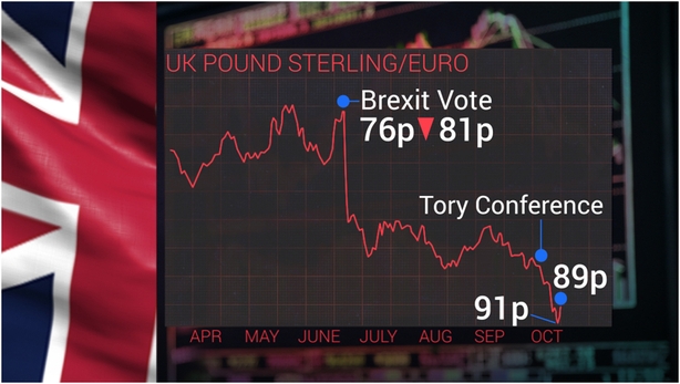 It had another tumble in early October after the Tory party conference, and dropped to 91p against the euro (it is currently at 89p).