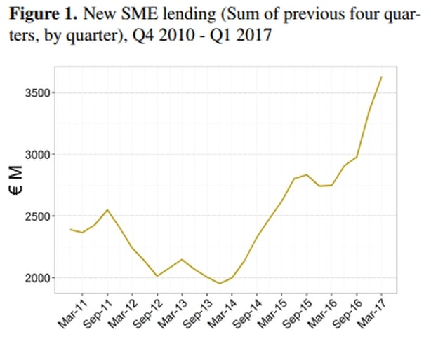 This is significantly higher than the first three months of the years between 2010 and 2013, when lending to SMEs ranged between €2 billion and €2.5 billion.