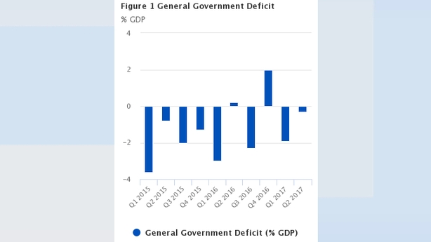 The Government recorded a deficit of €1.5 billion (1.1% of GDP) for the first half of the year, latest figures from the Central Statistics Office show.