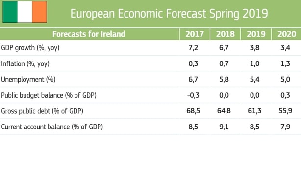 The Commission has predicted that GDP here will grow by 3.8% in 2019 and by 3.4% in 2020, below the rates of 4.1% and 3.7% predicted in an earlier forecast in February.