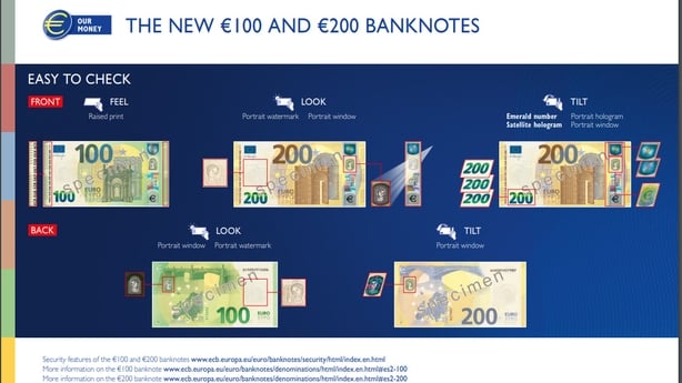 The new €100 and €200 notes complete the Europa series that has been gradually replacing the first set of euro notes first issued in 2002.