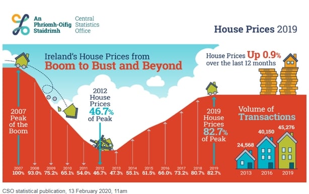 The CSO said that households paid a mean price of €295,714 for a home in the 12 months to December.