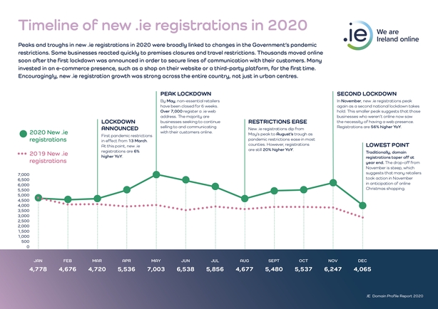 The highest peak occurred in May, when 7,003 new .ie domains were registered, the highest number ever registered in a single month.