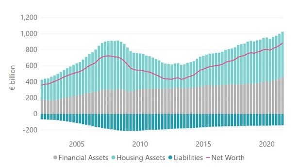 It also said that household deposits held with credit institutions were up in the first quarter, while housing assets also increased by €8.2bn and household liabilities fell by €1.5bn.