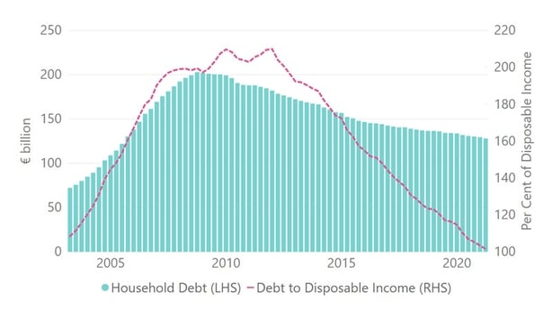 The figures show that household debt fell by €1.5bn over the quarter, continuing the downward trend, to stand at €128bn in the first quarter.