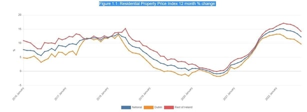 Prices in Dublin rose by 9.7% over the year, while prices outside the capital were up by 14.2%.