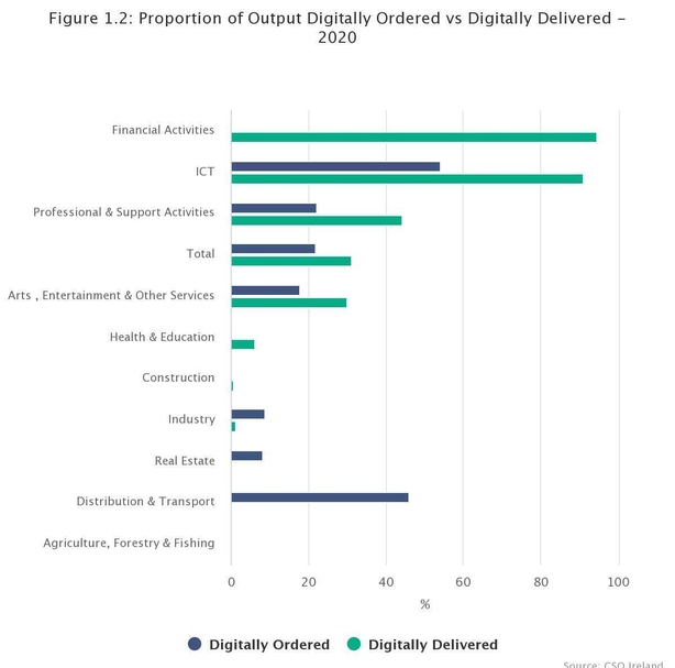 A new report from the Central Statistics Office reveals that 22% of the economy's output in 2020 was digitally ordered - representing €154 billion of transactions.