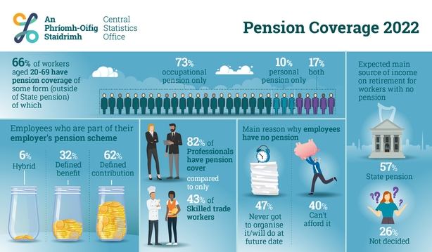 Two thirds of people aged between 20 and 69 had some form of private pension on top of the state pension, according to a report from the Central Statistics Office.