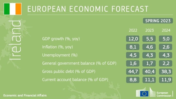 It also said that Irish inflation is estimated to have peaked at 8.1% in 2022 and is set to moderate gradually throughout 2023 to reach 2.6% in 2024.