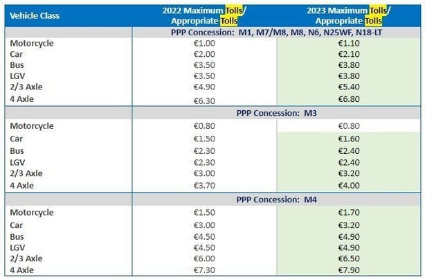 Tolls on the country's national road network are to increase from 1 July, the Department of Transport and Transport Infrastructure Ireland (TII) have confirmed.