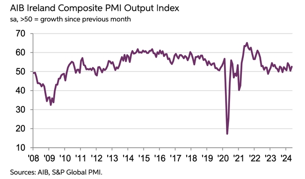 "Overall, Irish firms continued to report rising levels of new business, and this was linked to solid domestic and international demand, particularly from Europe and the UK," said David McNamara, AIB Chief Economist.