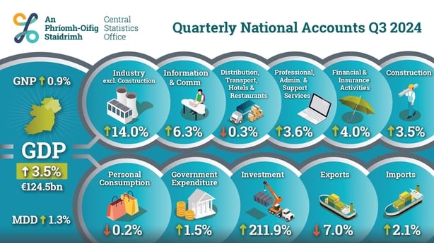Gross Domestic Product, a measure of the economy which includes the impact of multinationals, grew by 3.5% in the third quarter.