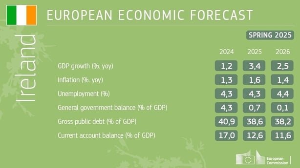 Today's forecast says Ireland's "robust" growth at the start of 2024 was likely due to multinationals accelerating exports ahead of potential tariffs, the report adds.