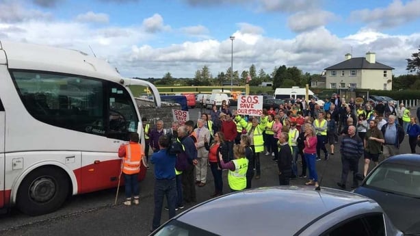 Over 100 people protest in Kilrickle Galway over decision by Bus Eireann to drop 10 stops on daily Dublin service @rtenews @RTENewsNow @RTENewsAtOne #saveourstops pic.twitter.com/ZC51jejBNe