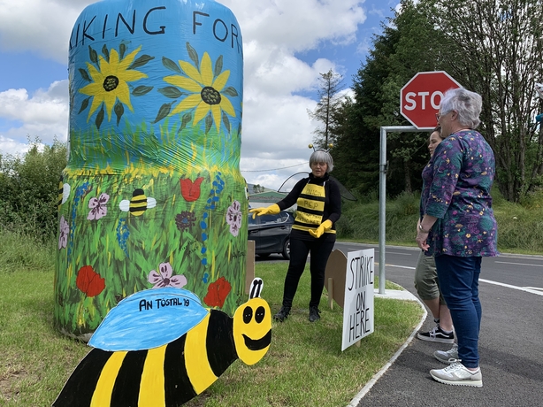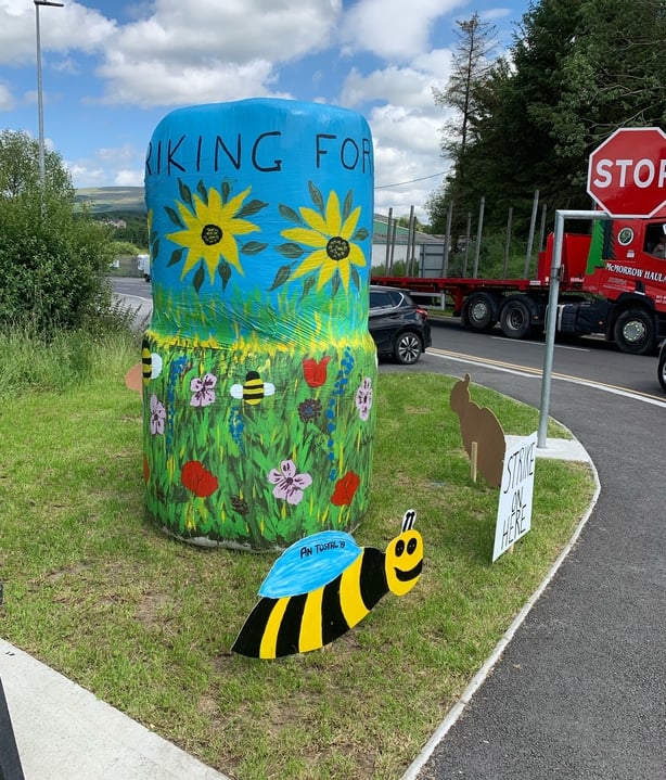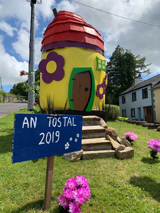 Approach roads to the town feature bales decorated as garda speed vans, while housing estates have taken a novel approach to several children’s fairytales to showcase the community effort.