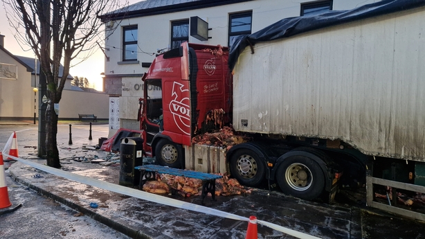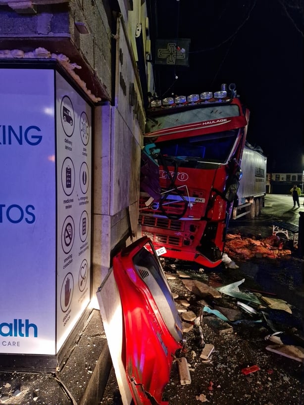 A garda spokesperson said: "A truck collided with a traffic island and then collided with a parked vehicle and caused extensive damage to a building on Market Square."