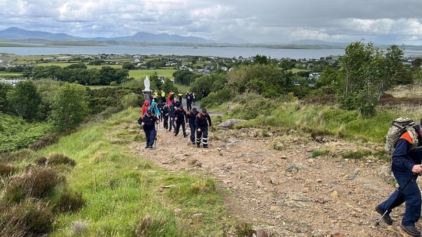 The climb began at 1pm and was due to culminate with a group photograph at the summit of the Reek overlooking Westport town.