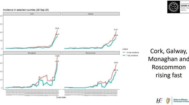 However, he said that Monaghan and Roscommon have a smaller population, their incidence rates can rise very quickly, but he said "they do stand out for the speed at which the situation there is deteriorating".