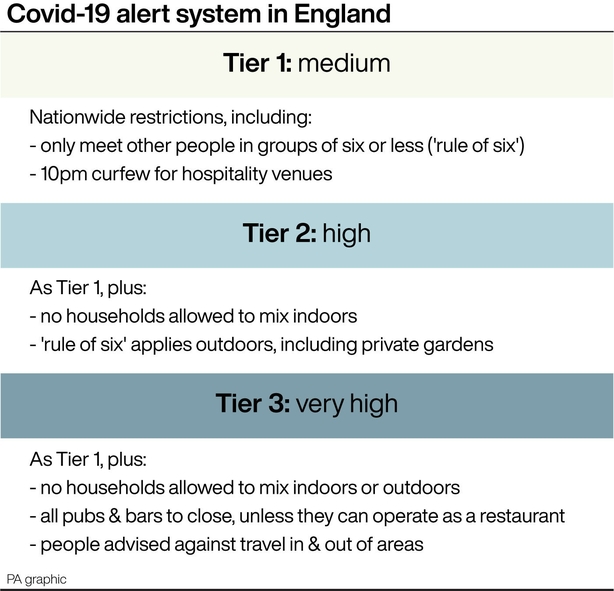 Tighter restrictions that come into force in the eight new areas on Saturday ban households mixing indoors, limit groups meeting outside to six, and advise against non-essential travel.