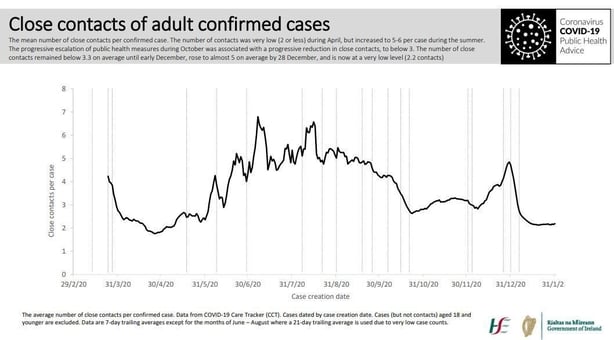 Prof Nolan said that looking at data from last week, there was no sign of the number of close contacts rising.